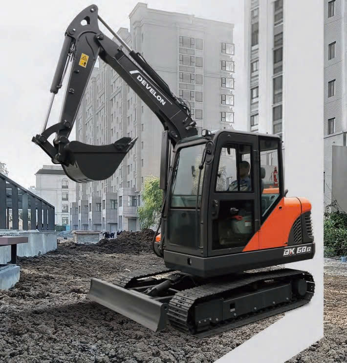 Máy xúc bánh xích Develon DX60D là dòng máy xúc đào bánh xích mini (nhỏ) công suất cao, trọng lượng vận hành 5.950 kg, trang bị động cơ DEVELON DW02 và dung tích gầu tiêu chuẩn 0,25.